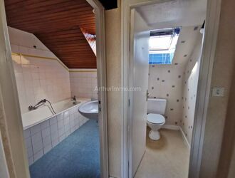 Location en meublé. Rue de Romillé (proche église), 2è étage (= dernier étage), sans ascenseur, appartement t2 meublé, 36 m² de surface au sol (soit 25 m² de surface Carrez) Exposition Sud/Sud-Est. Pièce principale (+ table, chaises, buffet, vaisselle), coin cuisine (+ réfrigérateur, cuisinière), chambre (+ lit 140, commode), wc, salle de bains.